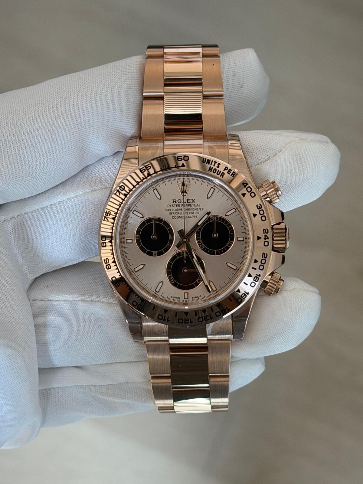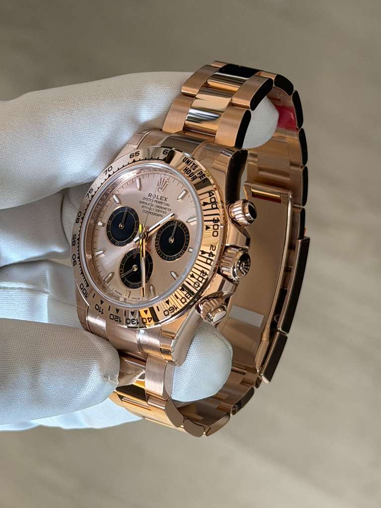 The Rolex Daytona 126505 is crafted in 18k Everose gold, blending iconic motorsport heritage with refined luxury. Featuring a 40mm Oyster case, this reference is powered by Rolex’s Caliber 4131, offering exceptional chronograph precision and reliability.