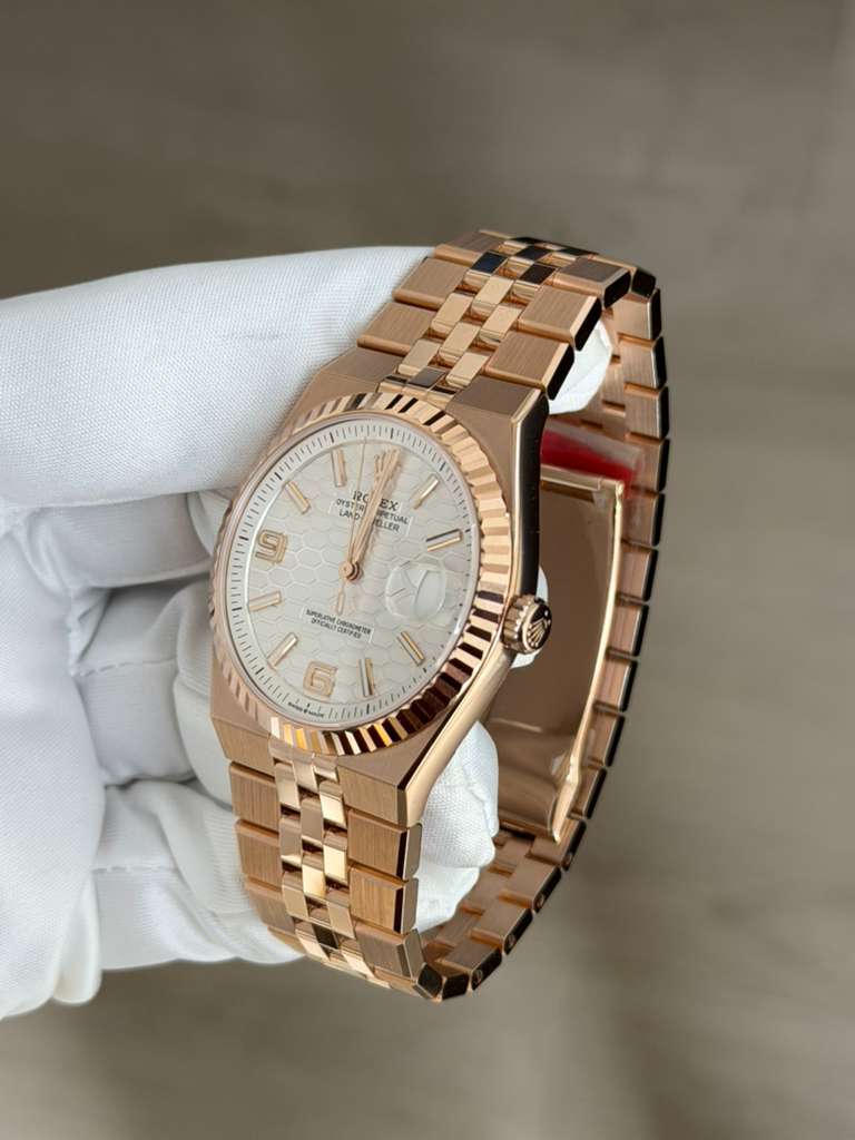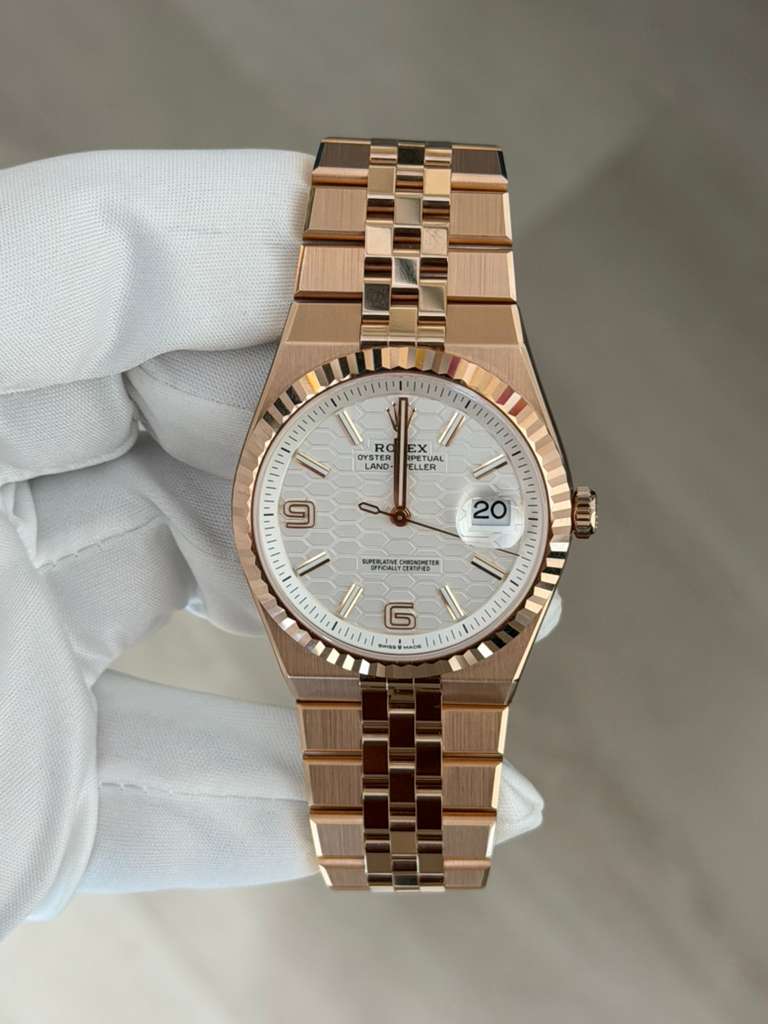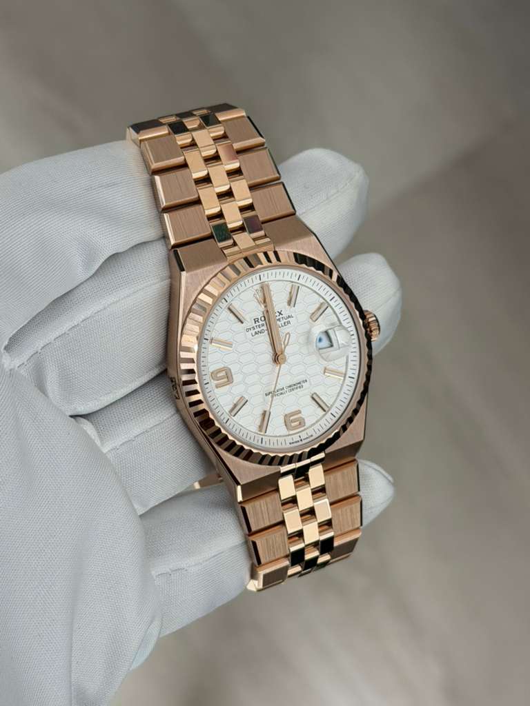 The Rolex Land-Dweller 127335 is crafted in 18k Everose gold, combining refined elegance with everyday versatility. Featuring a 39mm Oyster case, this reference is powered by Rolex’s self-winding automatic movement, delivering exceptional precision and reliability.